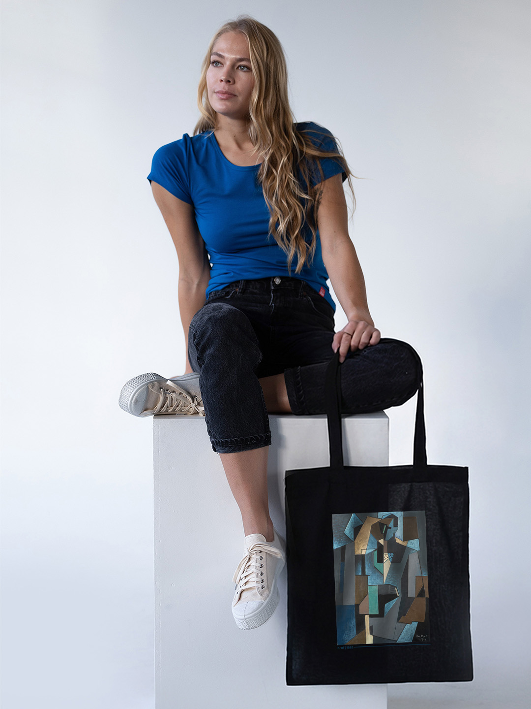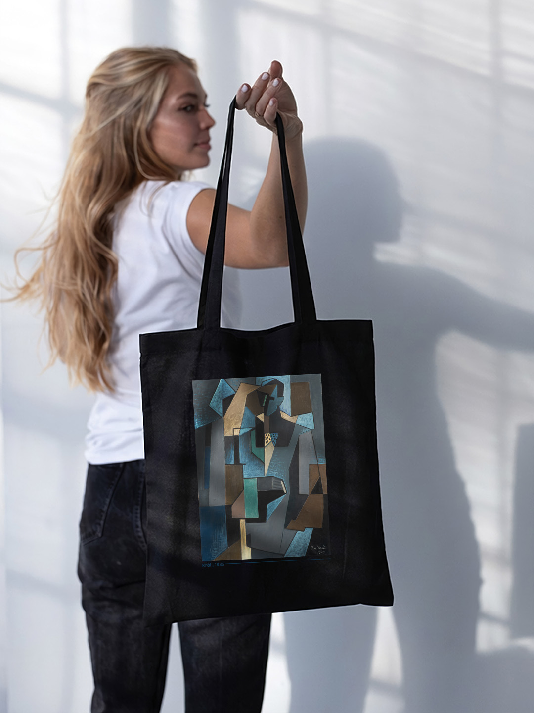 Tento design přináší ikonický kubistický portrét, v němž se strohé geometrické linie prolínají s jemnými modrými a šedými tóny, vytvářejícími dojem hloubky a harmonie. Abstraktní ztvárnění postavy zdůrazňuje klid, zamyšlenost i vnitřní sílu moderního člověka. Muž na obraze jen „je“. Není zde žádná akce, žádný příběh – jen bytí, klid a síla okamžiku.