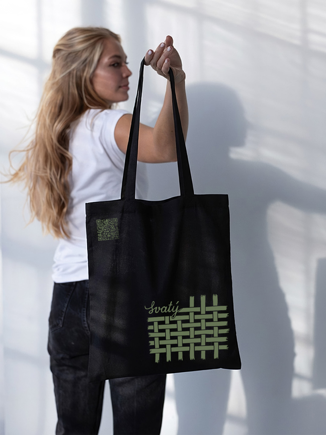 Motiv stylizované tkaniny připomíná samotný výsledek Svatého revoluční technologie. Jeho pravidelná struktura symbolizuje propojení lidí, nápadů i generací. A zelená barva není náhodná – jde o přesný odstín původního stroje, který je dodnes k vidění ve vstupní hale Výzkumného ústavu textilních strojů v Liberci. Na tašce najdete QR kód, který vás přenese do příběhu Vladimíra Svatého – vynálezce, který nikdy neztratil víru v techniku ani v lidství. Díky tomu se každá nositelka stává nejen součástí odkazu, ale i jeho nositelkou.